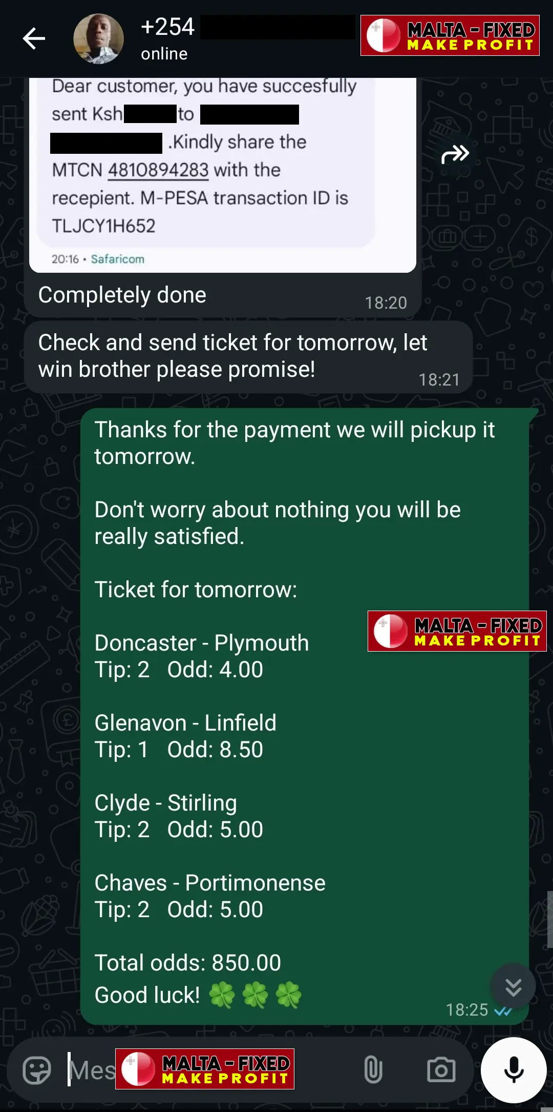 Malta-fixed.com is the only team in the world that provides you with the opportunity to earn through correct fixed matches, real football matches with agreed results, and guaranteed outcomes!