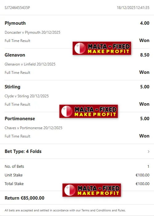 Welcome to Malta-Fixed.com, your trusted provider of sure bets. We have been operating online since 2018 and help all our customers to increase their betting profits thanks to our agreed and 100% sure soccer results.