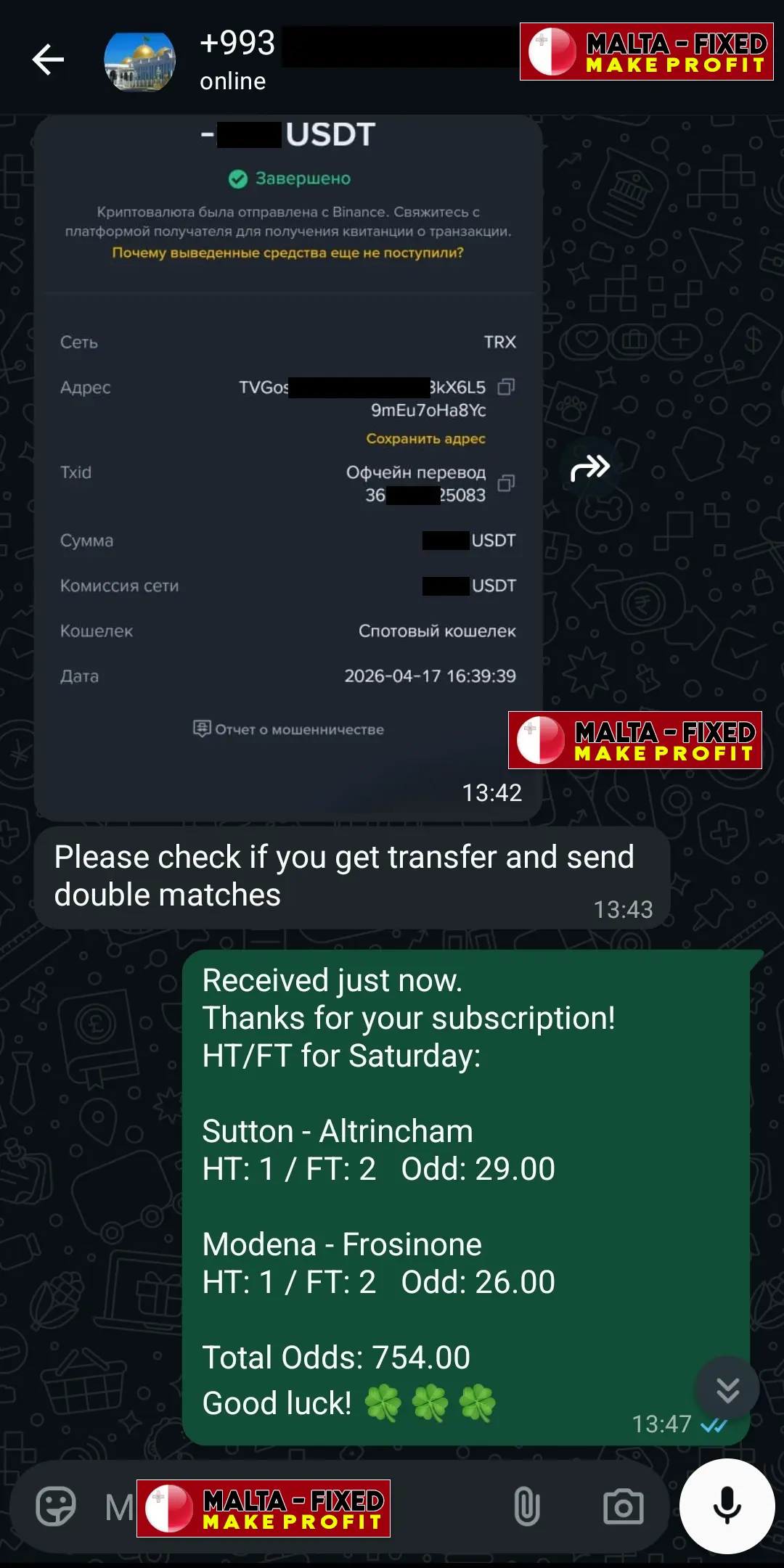Telegram : @MaltaFixed1x2