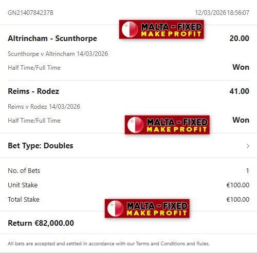Hello everyone. Welcome to our web site first. It is my honor and pleasure to be able to work with you. Malta-fixed is a verified web site where you can find 100 % sure soccer fixed matches. You’re right here in the right place to get your fixed matches. We have put together a team of world-class professionals who are fully committed to their work and will do everything in their power to make you money with our fixed matches. Don’t miss this chance to earn with our fixed matches everytime. This is your opportunity to make big money, Sincerely, the team of MALTA-FIXED.COM
