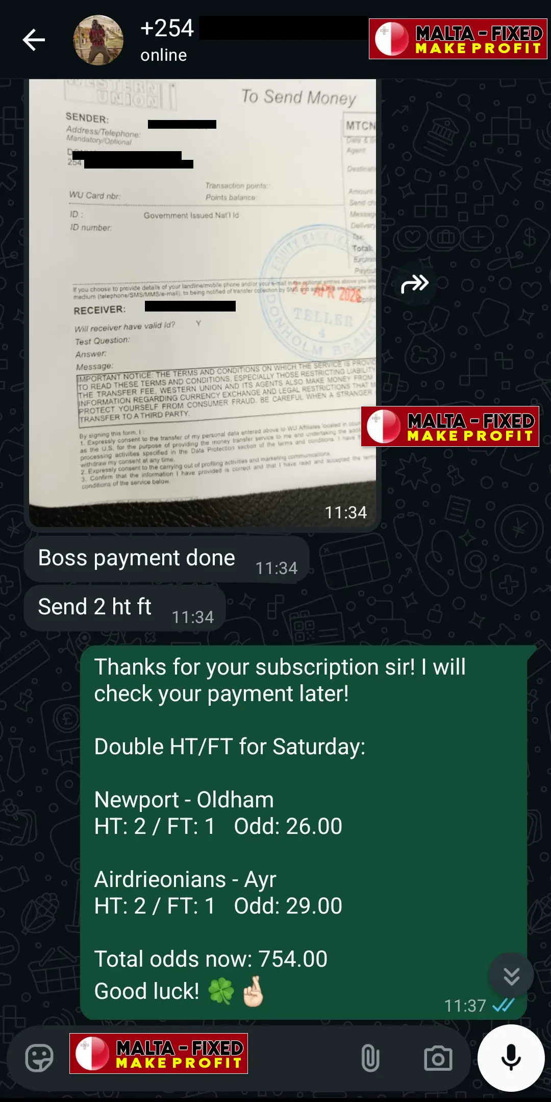 Here the payment for the fixed matches is processed before the start of the fixed matches. If you want to make a profit with our fixed matches you must first pay and then get your matches. Malta-fixed is the best site for the sale of fixed matches. Our double HT / FT fixed matches are 100% sure & safe. We have info directly from the club and are very strong sources. Also the odds are good for earn high money. You will easily make money with us, for more info contact us.