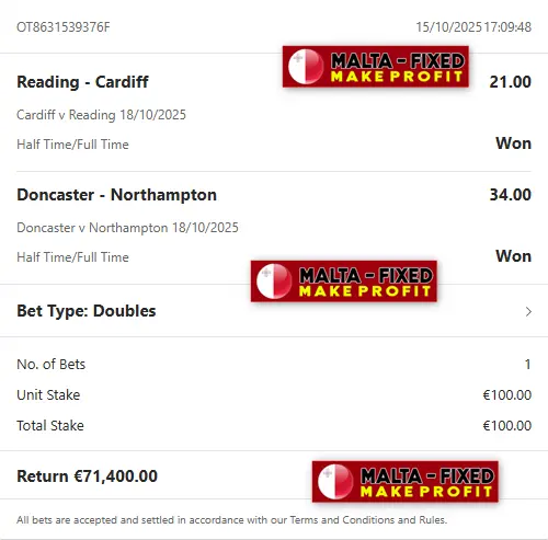 Hello everyone. Welcome to our web site first. It is my honor and pleasure to be able to work with you. Malta-fixed is a verified web site where you can find 100 % sure soccer fixed matches. You’re right here in the right place to get your fixed matches. We have put together a team of world-class professionals who are fully committed to their work and will do everything in their power to make you money with our fixed matches. Don’t miss this chance to earn with our fixed matches everytime. This is your opportunity to make big money, Sincerely, the team of MALTA-FIXED.COM